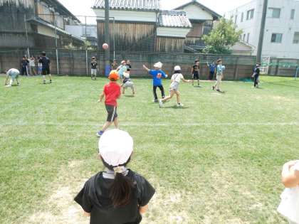 中間休みは、十数人の子どもたちでドッヂボールをしました。芝生運動場なので、ラインもないのですが、みんな見えないラインを守りながら「今のは外野やでー!」など、声を掛け合って遊んでいました。
