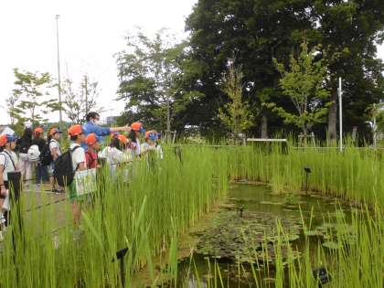 社会の学習でさすてな京都へ行きました。生活の中で出るゴミがどのように処理されているのかを見学しました。ゴミの量やクレーンの大きさなど実際に見ることができました。また、さすてな京都のビオトープでも総合で観察している植物の様子も見てきました。