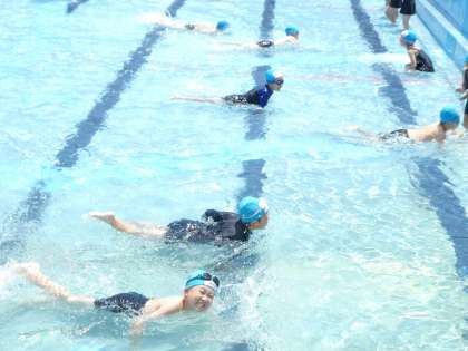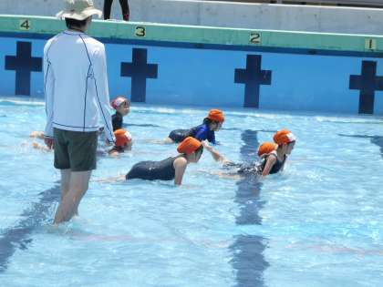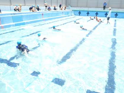 ワニさんになって水中散歩です。出来るだけ、足を延ばして、腕の力だけで進めるように頑張りました。