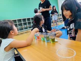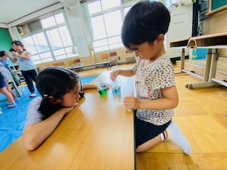 図画工作科では色水を使っていろんな色を作ったり混ぜたりして、楽しみました。素敵な色がたくさんできていました。