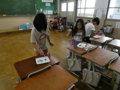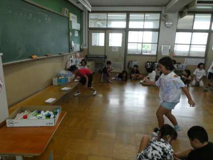 前回考えた遊びを、今日は実際にやってみました。今日やってみたのは「はしつかみ」です。ペットボトルのキャップをお箸でつかんで、何個運べるかチャレンジです。終わった後は振り返り。次はどんな工夫ができるか。どうやったらもっと楽しくなるかも考えました。