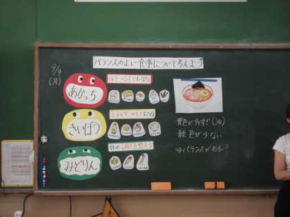 食育の学習でバランスのよい食事について考えました。苦手なものも少しでも食べる工夫やバランスを整えるにはどうしたらよいか自分なりにできそうなことを考えました。これから実践できるといいですね。