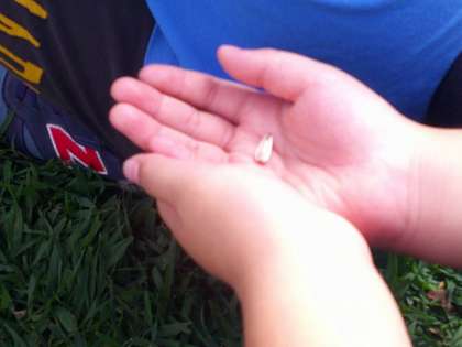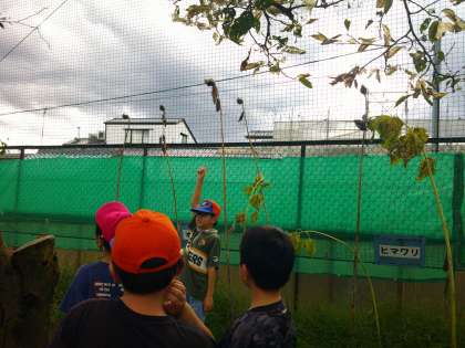 理科では、「植物の一生」について学習しています。今日は、春から育てていたヒマワリの実を観察しました。花が咲いた後には、実ができて、実の中には、種が入っていることが学習しました。