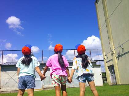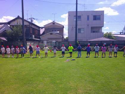 国語の学習では、「ちいちゃんのかげおくり」というお話を読んでいます。お話の中に「かげおくり」という遊びが出てくるので、今日、みんなでやってみました。「できた!」「青空に白いかげが写ってる!」といろいろなポーズでためしていました。さいごに、クラスみんなで手をつないでかげおくりをしました。