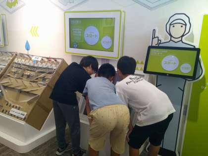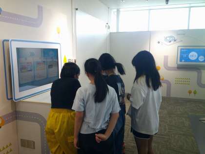 タブレットでクイズに答えていました。これから見学する内容にかかわる問題で、難しかったようですが、友だちと話しながら解答していました。