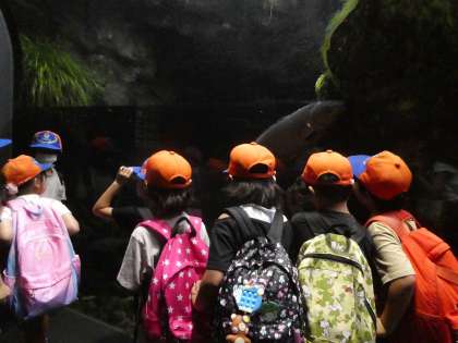 入口のオオサンショウウオのスペースや川魚の展示をまじまじと眺めます。