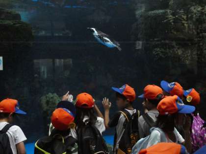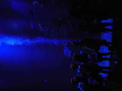 とても暗く大きい水槽の空間もありました。青く差し込む光がとてもきれいで、見惚れながら眺めていました。