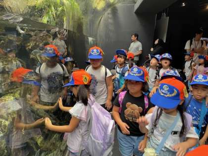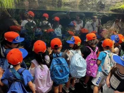 行きのバスの中から大盛り上がりの1・2年生。生き物を見るたびに大歓声が上がっていました。