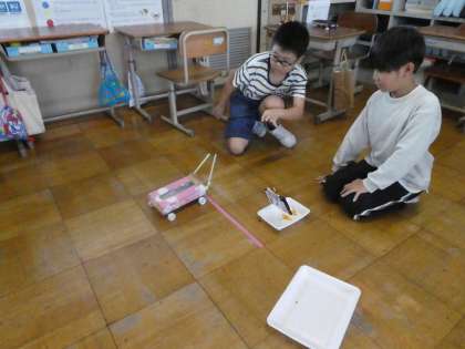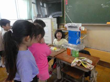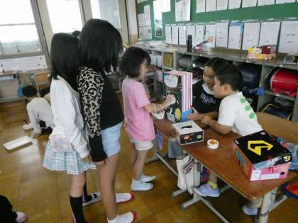 自分たちで作った動くおもちゃを紹介する(遊んでもらう)お店を開きました。ルールを説明したり、実際にやって楽しんだり、よい経験になりました。