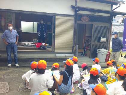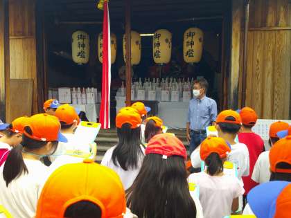 3年生の総合的な学習の時間では、地域のことについて学習しています。今日は、飛鳥田神社の御旅所におみこしを見に行きました。敬祭会の方に飛鳥田神社のお祭りのことや、おみこしのことなど、たくさんのことを教えていただきました。大人用のおみこしは、重さが2トンほどあり、昔は、大人が50〜60人ぐらいで担いでいたことを聞いて、みんな驚いていました。