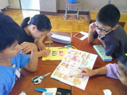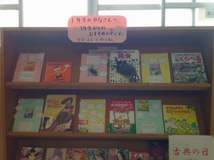 3年生の国語では、1年生が本を好きになってくれるような、楽しい本を選びました。1年生に、どんな本をおすすめするとよいか、グループで話し合って、1冊選び、ポスターを書いて紹介しました。おすすめした本を読んでもらえるのを楽しみにしています。