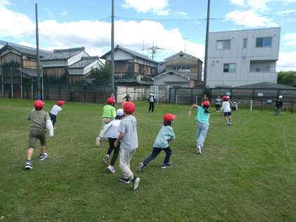 暑さや運動会の練習などでできなかったロング昼休み。久しぶりに長い時間の昼休みです。遊び係さんが考えて企画してくれた「どろけい」をみんなでしました。2年生だけで芝生運動場を使えたので、のびのび走りまわって楽しみました。