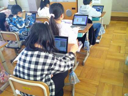 3年生の算数では、プログラミングの学習をしました。命令を組み合わせてレーシングカーを動かすプログラムを作りました。初めての学習でしたが、みんな真剣に取り組み、思い通りにレーシングカーが動いた時は、とても嬉しそうでした。