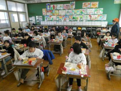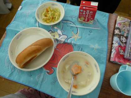 今日の給食はラッキー賞でした。星形の人参が入っている人がラッキー★です。星形人参が入っていた子は「もったいなくて食べられない♪」と話していました。今月のしおりは「雪うさぎ」です。