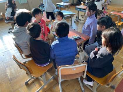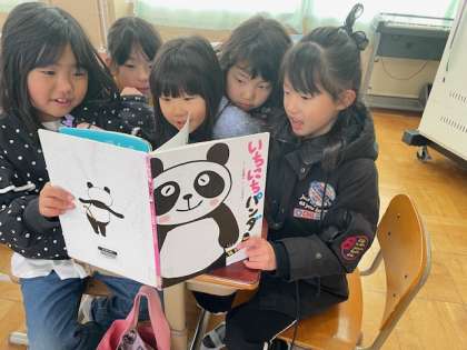 本が大好きな1年生、面白うそうな本を見つけると、みんなでブックトークをしながら、楽しんでいます。