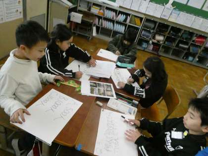 2学期は1人1人、分かったことをリーフレットにまとめましたが、今学期は、グループでの発表に向けて準備を進めています。