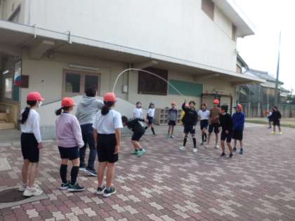 1月17日の体育科では持久走の後、いろいろな縄跳びにチャレンジしました。