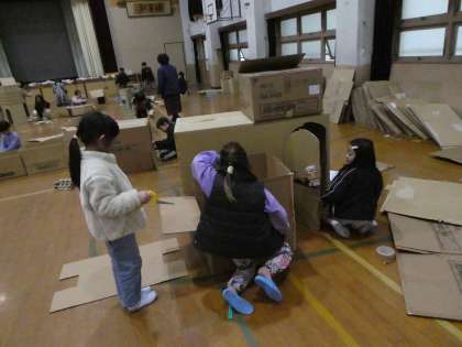 【2年生】図工:段ボールに入ってみると