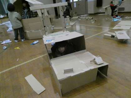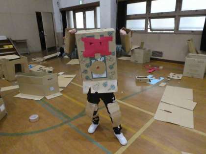 【2年生】図工:段ボールに入ってみると