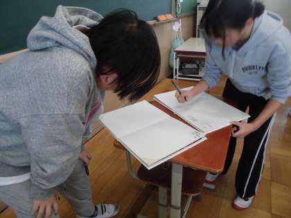 友達に寄せ書きを書いてもらっている子もいました。