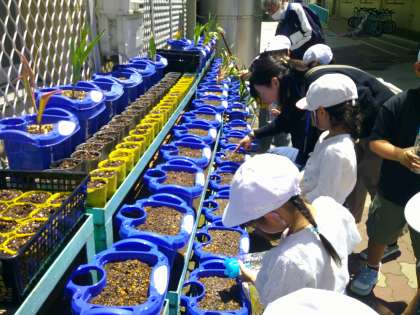 朝顔の種を植えました。大事そうに種の向きに気を付けて丁寧に植えていました。「早く大きくなってほしいな。」「水やりがんばるわ!」とやる気いっぱいの子どもたちでした。