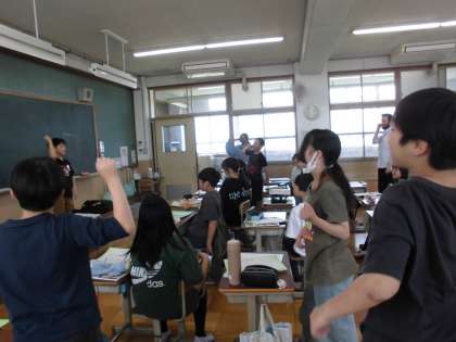 外国語では、自分の宝物について友達に話したり、たずねたりする活動をしました。じゃんけんゲームもして、みんな楽しんで活動できました。