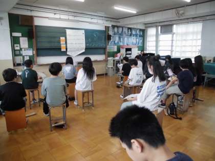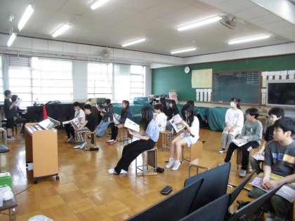 今日の音楽では、「ペガサス」という歌を歌いました。アルトとソプラノに分かれ練習します。つられないように何度も練習を重ねるうちに、きれいなハーモニーが生まれてきました。