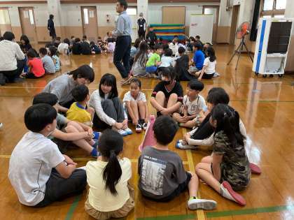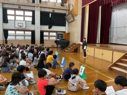 5月23日(金)に1年生を迎える会を開きました。6年生や代表委員が中心となって、たてわり班で好きなものを言い合ったり、クイズをしたりしました。高学年として年下の子に優しく接する姿がとても素晴らしかったです。