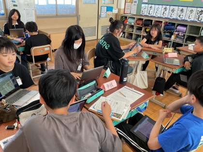 社会科の学習では、市の政治の働きについて調べたり、考えをまとめて伝えあったりしました。「市民」「市役所」「市会」に分かれて役割を説明する場面では、働きや取り組みをしっかりと説明することができました。