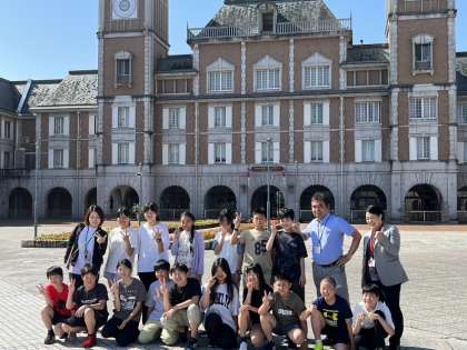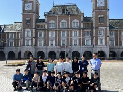 神戸ホテルをバックに記念撮影