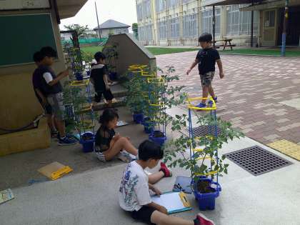 色が変化してきたミニトマトもあり、野菜の成長を感じながらこれからももっと育てていきたいと意欲を高めていました。