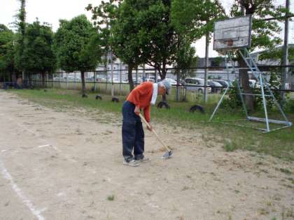 6月9日(土)の運動会に向けて,子どもたちがしっかり活動できるように,地域の方に第2運動場の整備をしていただいています。どうもありがとうございます。