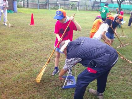 総合の学習で地球温暖化と横大路小学校の芝生との関係について勉強をしていきます。今日はその第一回目ということで芝生のコアリング作業を体験させてもらいました。子ども達はいつも芝生の手入れをしてもらっていているおかげで、綺麗な芝生が育っているということに気づいていました。これからも芝生を大切にしたいと振り返っていました。