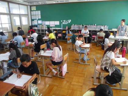 始業式を終え、各教室で夏休みの思い出を話したり、2学期の目標を考えたりしました。