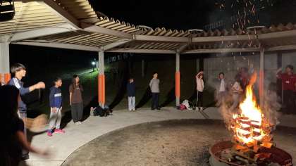 炎が勢いよく舞い上がります。子どもたちの気持ちも盛り上がってきました。