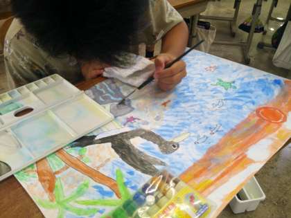 図工の学習では、「言葉から感じて(お話の絵)」に取り組んでいます。