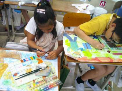 子どもたちは2作品の中から自分で1作品を選び、構図や色彩にこだわりながら絵を描いています。