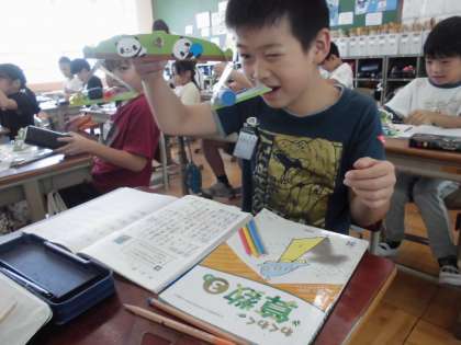 算数科では「重さ」の学習が始まりました。文房具の重さをてんびんで比べてみました。予想をしながら、いろいろな重さを比べることができました。