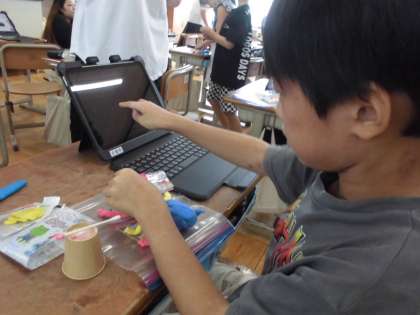 音楽交流会のあとは理科の学習です。こん虫の体のつくりをよく観察して、紙粘土を使って、確認をしました。みんな楽しそうに学習に取り組んでいました。