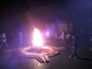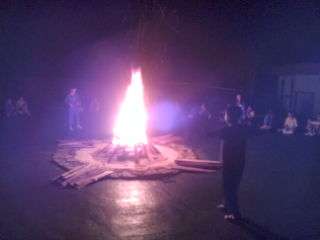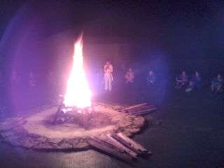 1日目のお楽しみ。7つの作戦を成功させる!と言うめあての2つ目。キャンプファイヤーです。パールの女神様から大切な火をもらい,歌ったり踊ったり。