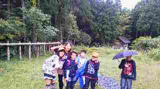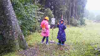 少し雨が降っていますが,午後からの活動「スコアオリエンテーリング」で,山の家を散策しています。