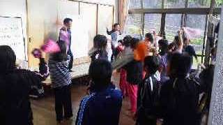 夕食前に,明日のキャンプファイヤーの出し物の練習をおこないました。