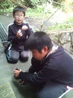 野外炊事を無事終了し,花背焼きまでの時間に散策しています。