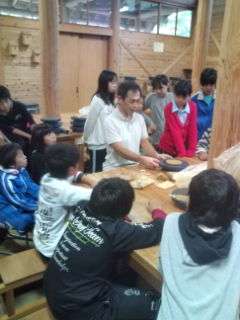 古民家のそばにあるアトリエで,花背の土を織り込んだ粘土で作品を作ります。
