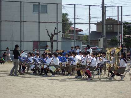 10月7日(日)秋空の下,横大路学区明運動会がおこなわれました。入場行進の演奏は洛水中学校のブラスバンド部がおこない,最終聖火ランナーは6年生女子が努めました。
