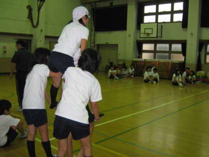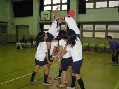 運動会の団体競技 騎馬戦の練習が始まりました。騎馬を組んで赤白帽を取り合います。練習とはいえ子ども達は真剣そのものです。まわりの子ども達も自然と大きな声援をおくっていました。本番に向けてがんばりましょう。
