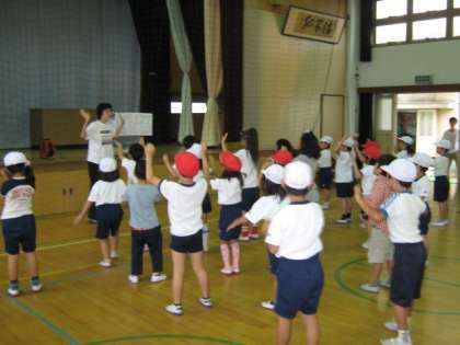 台風18号の影響で学校の始業時間が3校時からになりましたが,1年生の子ども達は元気に運動会の団体演技で披露する「めざせ!ヤッターマン!」を体いっぱい使って練習していました。みんないろいろな動きを楽しんでの練習です。がんばってね!