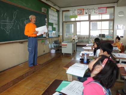 5月14日(火)1校時には,学校運営協議会理事の高須正義様を講師に迎えて,キュウリやナスの育て方や世話の仕方を指導していただきました。