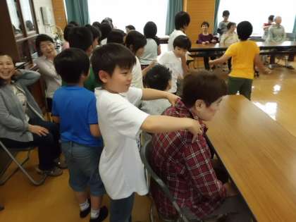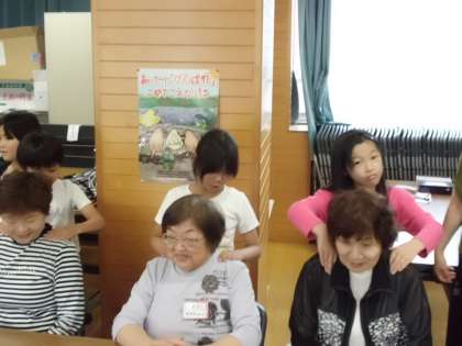 力をこめて肩をもんだら,「ちょうどいい具合やわ。」とほめてもらって,嬉しそうでした。