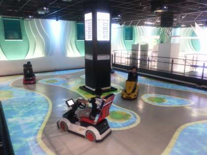 サーキットの体験では,自分の車の色と同じ色の光を追跡して、得点を競いました。